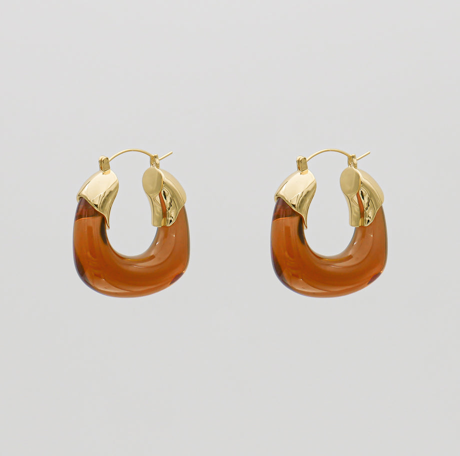 Our Amber Celine lucite hoop Earrings adds a unique shimmer to any look, featuring a unique tubular oval shape, these earrings will add that extra touch you've been looking for.  Also available in Clear.