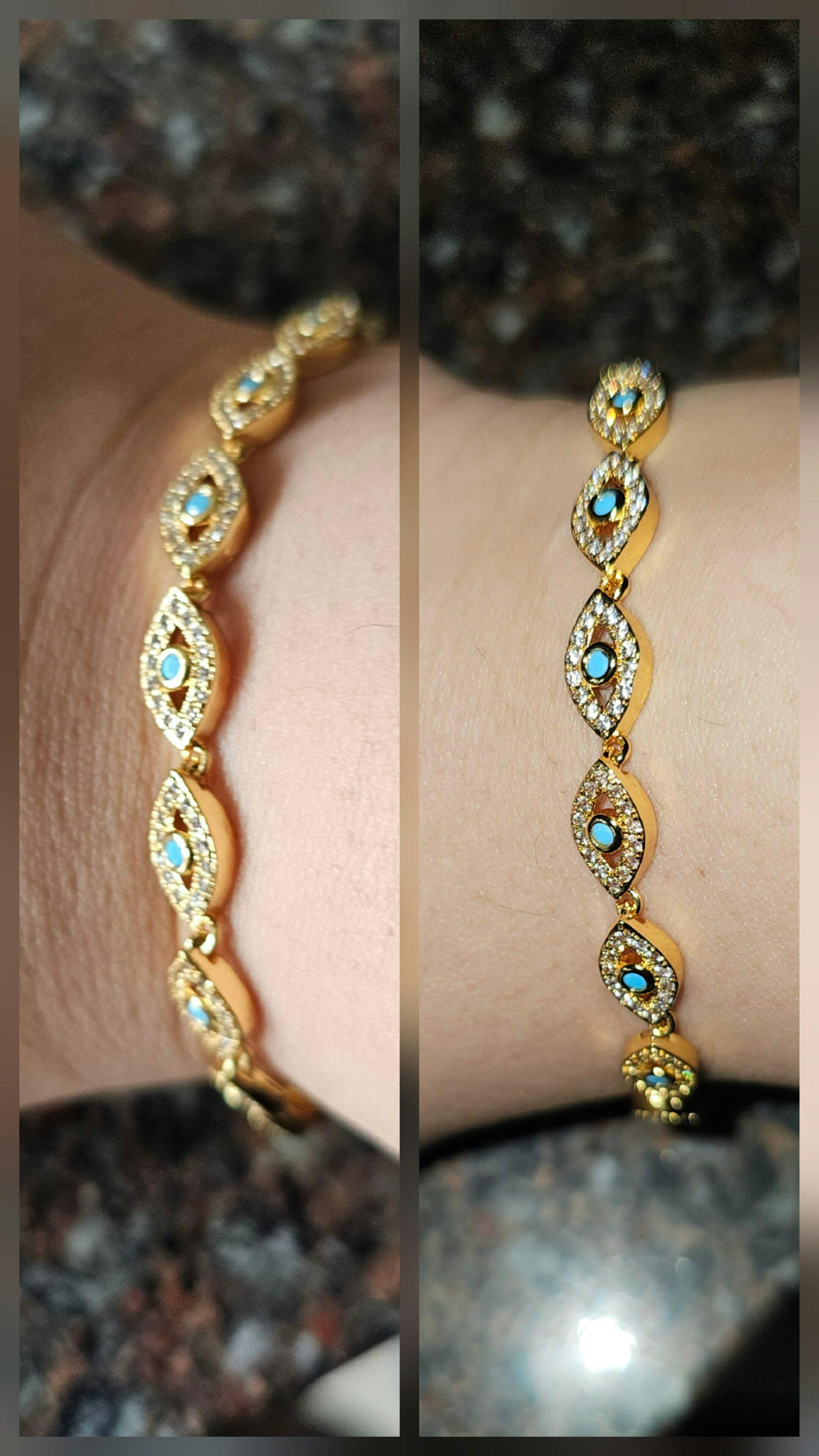 close up of Gold Evil eye bracelet  paved with CZ stones