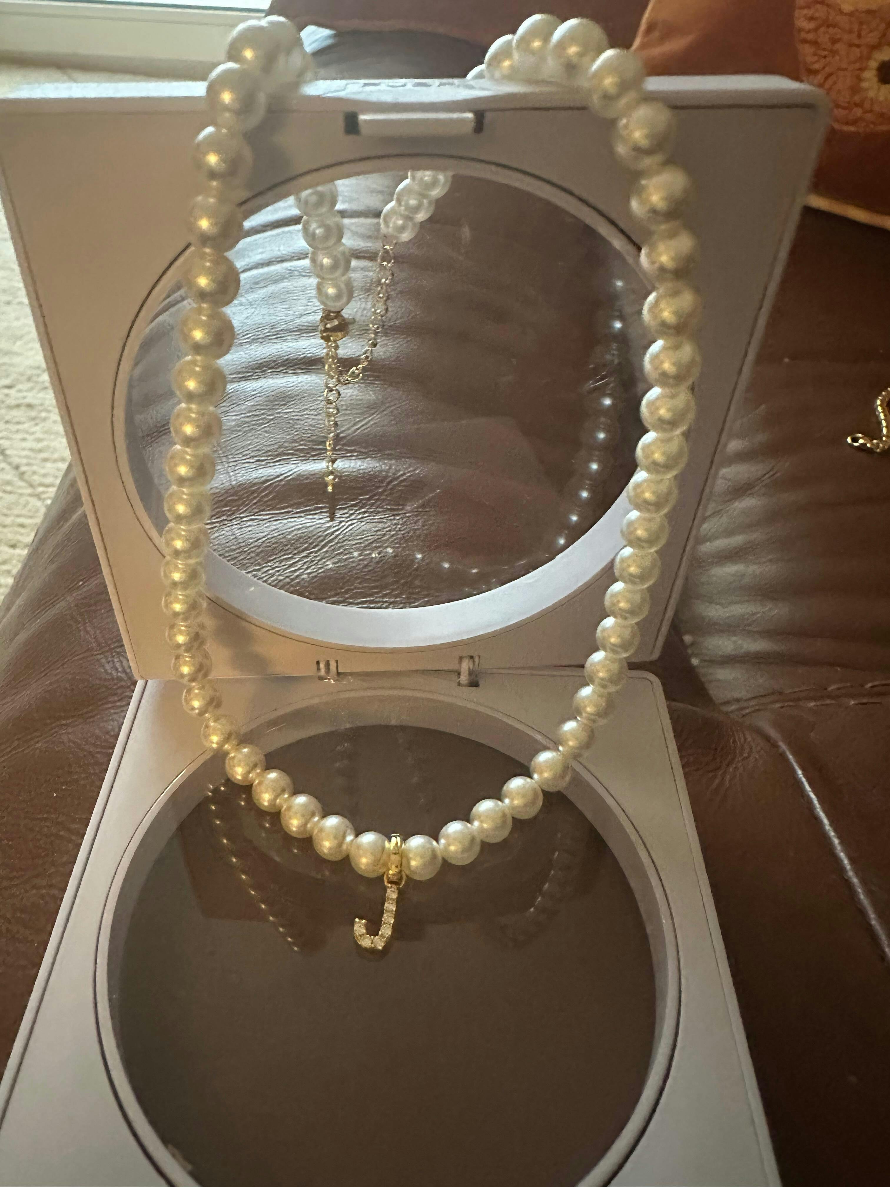 Beautiful necklace . Pearls were a nice size and colour. The initial was a J . Would recommend this pretty thing . The delivery was quick .