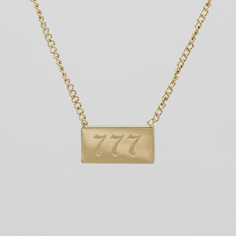 Gold Custom Angel Number Tablet Pendant Necklace, Number 777 by PRYA