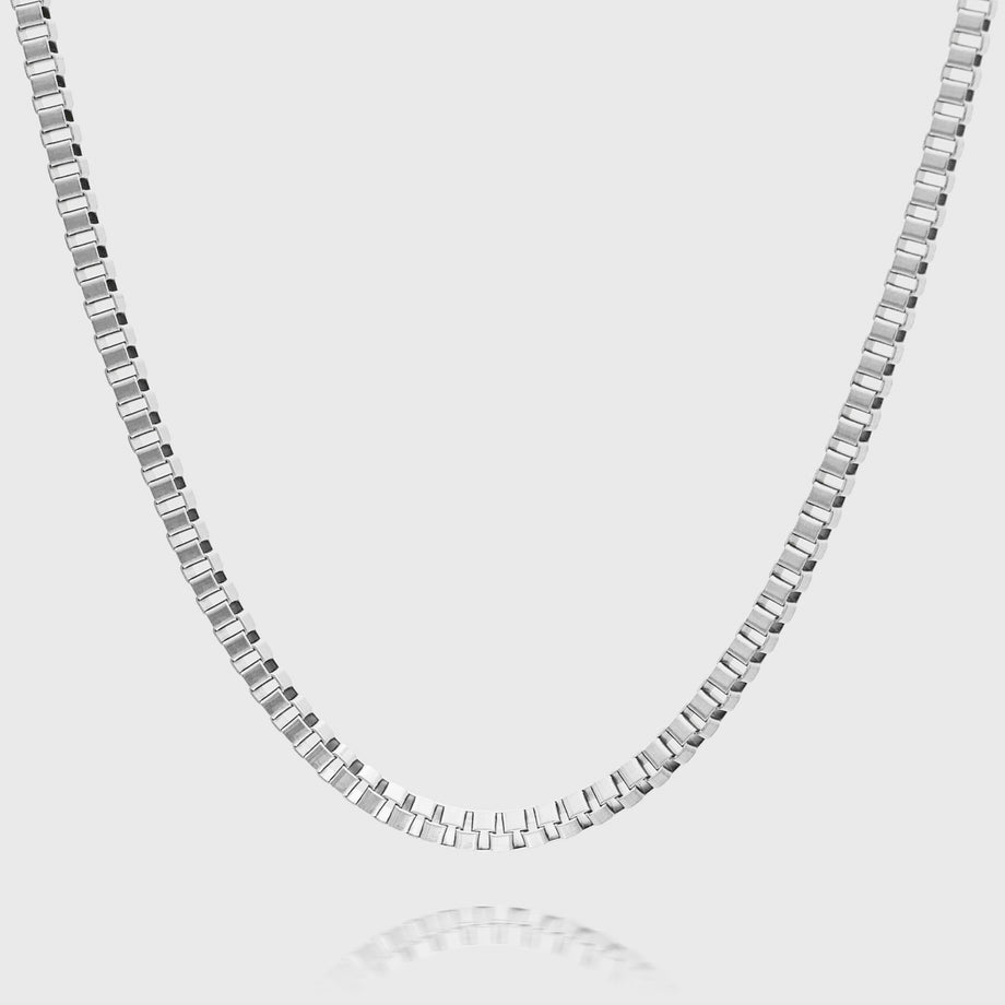 Make an elegant statement in our silver plated box chain necklace. This chain is perfect for layering with pendant necklaces or mix and match with other chains from our classic chain collection.  Also Available In Gold - GOLD