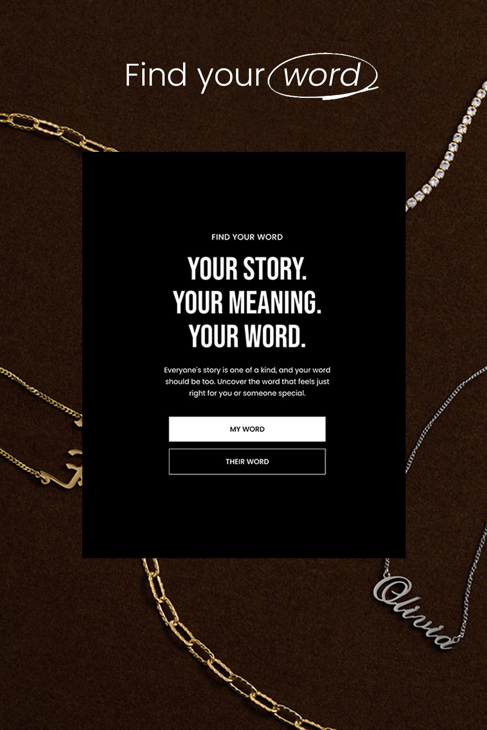 Every story is unique and your word should be too. That’s why we created our personalisation tool: to make it simple and meaningful to discover a piece that feels just right for you, or one that perfectly captures someone else’s story.