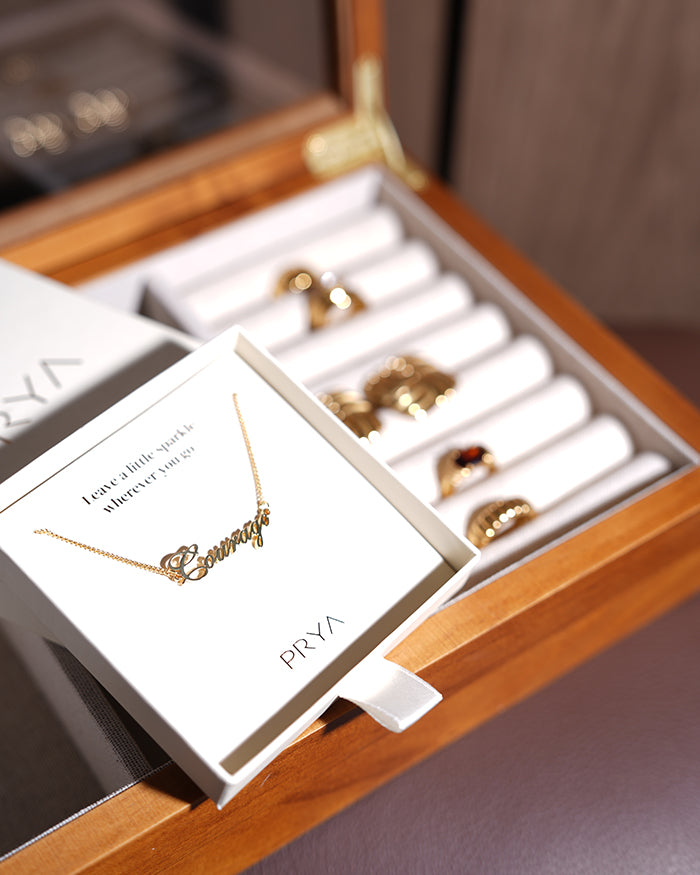 Left it a little late? Don’t worry – PRYA has you covered. Our ready-to-deliver personalised jewellery collection makes last-minute gifting effortless, without compromising on style or thoughtfulness. From initial necklaces to stackable rings, every piece is crafted to delight and arrive in time for Christmas. Beautifully made and perfectly packaged, these ready-to-ship treasures bring a thoughtful, personal touch—luxury gifting without the last-minute stress.