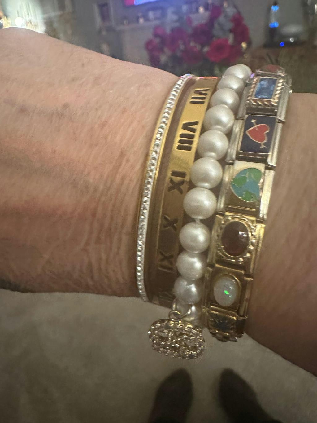 Lovely bracelet. I ordered 1 for my daughter as a birthday present. Liked so much I ordered another one for myself. The bracelet is lovely made solid feel . It is very small on the wrist so you would have to have a small wrist for this one .