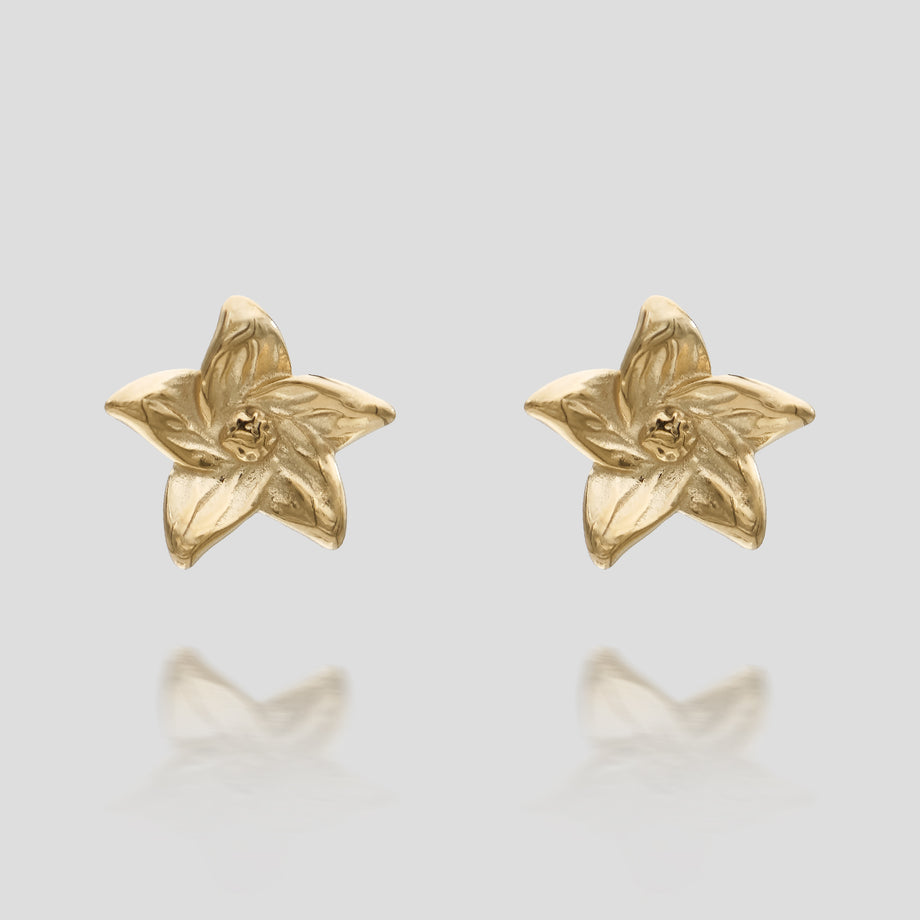 Camilla Flower Earrings feature a stunning design inspired by beautiful lilies, crafted in 18k gold plated stainless steel